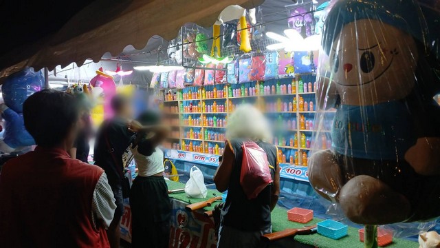 อาทิ เข้าข่ายการพนันเสียเงิน โยนตะกร้าให้ครอบสิ่งของติดธนบัตรตั้งแต่ 20-500 บาท จับสลากได้สิ่งของหรือเงิน หมุนลูกศร ปาลูกดอก ปากระป๋องได้สิ่งของ จับฉลากได้รางวัล ได้เงิน ยิงตุ๊กตาปาลูกโป่งด้วยดอกลูกศร จับสลาก ฯลฯ ซึ่งแต่ละประเภทของอบายมุข มีรางวัลเป็นสิ่งล่อใจเช่นเงินสด ตุ๊กตา หมอน เครื่องดื่มเครื่องใช้ต่างๆ ที่บางอย่างไม่มีคุณภาพเท่าที่ควร โดยส่วนใหญ่จะไม่ค่อยได้อะไรเลย หรือหากได้ก็รวมๆแล้วไม่คุ้มกับที่ผู้เล่นต้องเสียไป
