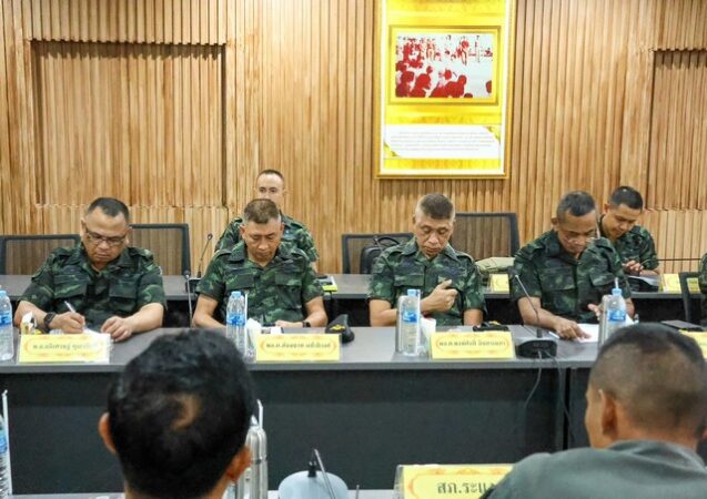 วันที่ 20 มีนาคม 2568 เวลา 10.20 น. ณ ห้องประชุมตันหยงมัส ชั้น 2 ที่ว่าการอำเภอระแงะ จังหวัดนราธิวาส พลโท ไพศาล หนูสังข์ แม่ทัพภาคที่ 4 / ผู้อำนวยการรักษาความมั่นคงภายในภาค 4 พร้อมคณะฝ่ายอำนวยการ กองอำนวยการรักษาความมั่นคงภายในภาค 4 ส่วนหน้า ลงพื้นที่ตรวจเยี่ยมการปฏิบัติงาน ของศูนย์ปฏิบัติการอำเภอระแงะ พร้อมรับฟังบรรยายสรุปสถานการณ์ และผลการปฏิบัติงานของศูนย์ปฏิบัติการอำเภอระแงะ เกี่ยวกับการปฏิบัติงานของหน่วยในพื้นที่พร้อมรับทราบถึงปัญหาข้อขัดข้อง ก่อนร่วมพูดคุยหารือและมอบนโยบายในการปฏิบัติงาน พร้อมกำชับให้เพิ่มมาตราการรักษาความปลอดภัยช่วงเดือนรอมฎอน และการดูแลคุณภาพชีวิตของพี่น้องประชาชนให้มีความเป็นอยู่ที่ดี โดยมี รองผู้อำนวยการศูนย์ปฏิบัติการอำเภอระแงะ หัวหน้าส่วนที่เกี่ยวข้อง พร้อมด้วยผู้นำท้องที่ ท้องถิ่น กำนัน ผู้ใหญ่บ้าน ร่วมประชุมฯ