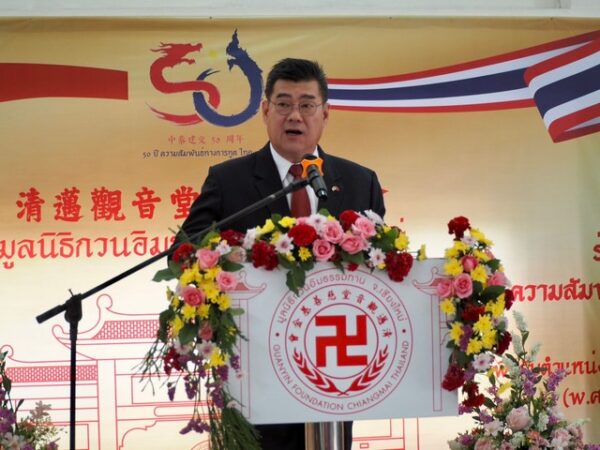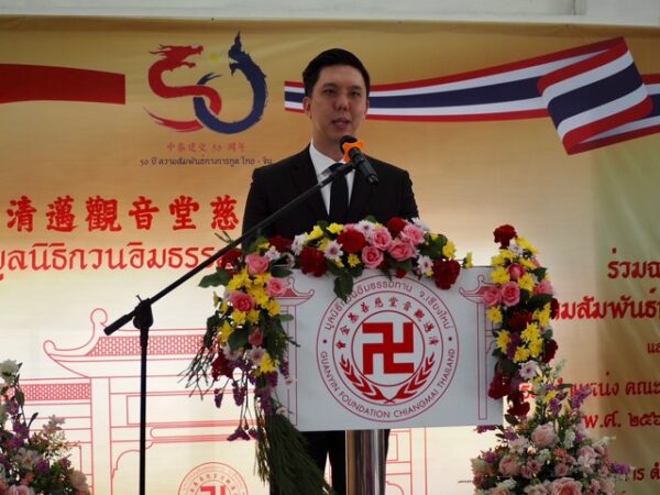 ในโอกาสที่มูลนิธิกวนอิมธรรมทานเชียงใหม่ได้จัดตั้งคณะกรรมการชุดที่ 27 และการที่คุณสุรศักดิ์ ประสพเกียรติโภคา ได้รับเลือกตั้งเป็นประธานต่อเนื่องกันเป็นครั้งที่ 4 นี้ และปีหน้า มูลนิธิกวนอิมธรรมทานเชียงใหม่จะฉลองครบรอบ 60 ปี ขอเป็นตัวแทนขององค์กรไทยเชื้อสายจีนในเชียงใหม่แสดงความยินดีและขอให้มูลนิธิฯ เจริญรุ่งเรือง ยิ่งใหญ่ขึ้นไป ร่วมมือกันทำงานเพื่อส่งเสริมงานการกุศล สืบสานวัฒนธรรมจีนและเสริมสร้างความสัมพันธ์อันดีระหว่างประเทศไทยและประเทศจีน