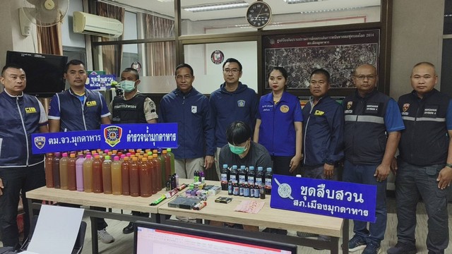 มุกดาหาร-ตร.ชุดสืบเมืองมุกดาหาร สนธิกำลังจับหนุ่ม ลักลอบขายบุหรี่ไฟฟ้า และน้ำกระท่อม