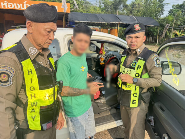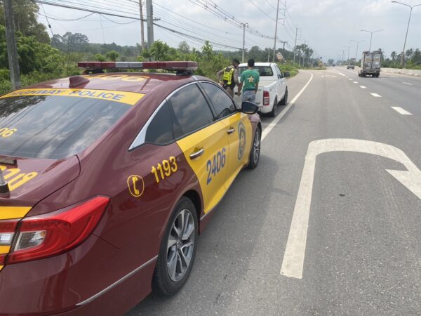 ชุมพร – ตำรวจทางหลวงเรียกตรวจชายขับรถประมาทหวาดเสียวด้วยความเร็วเจอทั้งปืนและยาบ้า