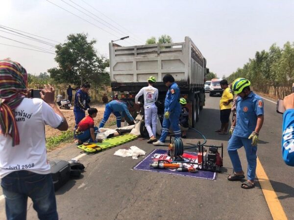 ร้อยเอ็ด…ว่าที่บัณฑิตดวงกุด…ขับจยย. ชนท้ายสิบล้อขนทรายดับ
