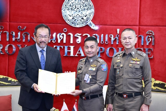 ผู้แทนสถานเอกอัครราชทูตญี่ปุ่น และสำนักงานตำรวจแห่งชาติญี่ปุ่น เข้าพบจเรตำรวจแห่งชาติ ขอบคุณตำรวจไทยที่จับกุมบุคคลตามหมายจับ และช่วยเหลือเหยื่อแก๊งคอลเซ็นเตอร์ชาวญี่ปุ่น พร้อมมอบเกียรติบัตรแก่คณะทำงาน