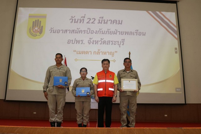 วันที่ 24 มีนาคม 2568 เวลา 14.00 น.นายบัญชา เชาวรินทร์ ผู้ว่าราชการจังหวัดสระบุรี เป็นประธานการจัดกิจกรรมเนื่องในวัน อปพร. ประจำปี 2568 พร้อมด้วย พันเอกเอกรัติ เมธาวัฒนานันท์ รองผอ.รมน.สระบุรี พันเอกกิตติชัย พฤกษ์พิพัฒน์เมธ รองผู้บัญชาการศูนย์การทหารม้า นายวัฒนพงษ์ พงศ์กิจจาเลิศ หัวหน้าป้องกันและบรรเทาสาธารณภัยจังหวัดสระบุรี นายกฤษดา อินทร์พาเพียร ประธานศูนย์ประสานงานอาสาสมัครป้องกันภัยฝ่ายพลเรือนจังหวัดสระบุรี นายอรรถการณ์ จิตถวิล นายอำเภอเมืองสระบุรี ผู้ว่าฯ มอบเกียรติบัตรแก่ ดร.ธนพิพัฒน์ วิธูชุลีโชติ นายกองค์การบริหารส่วนตำบลหน้าพระลาน ซึ่งเป็นศูนย์อาสาสมัครป้องกันภัยฝ่ายพลเรือนดีเด่นระดับจังหวัดสระบุรีประจำปี 2568 มีภาคเอกชนโดยนางวิบูลย์ศิริ บุญพัฒน์ ผู้จัดการฝ่ายสื่อสารองค์กร บริษัท ทีพีไอ โพลีนจำกัด(มหาชน),