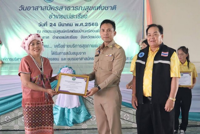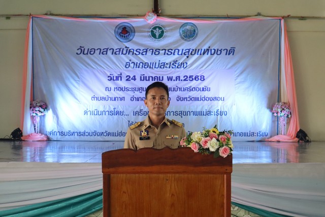 ที่ หอประชุมสำนักงานคริสตจักรเขตแม่สะเรียง อำเภอแม่สะเรียง จังหวัดแม่ฮ่องสอน นายวรศักดิ์ พานทอง นายอำเภอแม่สะเรียง เป็นประธานเปิดกิจกรรมวันอาสาสมัครสาธารณสุขแห่งชาติ ประจำปี 2568 โดยมี นายกมล ใจถา สาธารณสุขอำเภอแม่สะเรียง นายธีรเดช ปันนะ ประธานชมรมอาสาสมัครสาธารณสุขอำเภอแม่สะเรียง เจ้าหน้าที่สาธารณสุข และอาสาสมัครสาธารณสุขอำเภอแม่สะเรียงจากหมู่บ้านต่าง ๆ ในพื้นที่อำเภอแม่สะเรียง จำนวน 900 คน เข้าร่วมกิจกรรม