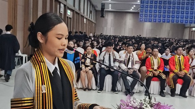 พร้อมทั้ง ขออำนวยอวยพรอำนาจคุณพระศรีพระรัตนตรัยสิ่งศักดิ์สิทธิ์ ที่ทุกท่านเคารพนับถือ องค์พระวิษณุกรรมช่วยประทานพร ให้ผู้สำเร็จการศึกษาทุกท่านและทุกท่านที่มาร่วมในพิธีมีความสุข ความเจริญ ประสบความสำเร็จในชีวิตและภารกิจในกิจการงานที่ทำตลอดไป