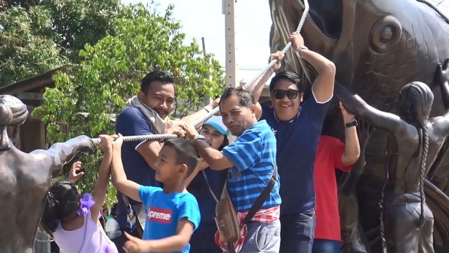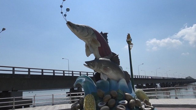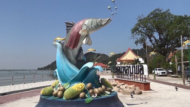สงขลา-ชาวเกาะยอยังคงเน้นปลากะพงขาว ที่เป็นเอกลักษณ์ของเกาะยอ ทั้งการสร้างประติมากรรม จุด check Point และเสาไฟฟ้าปลากะพงขาว