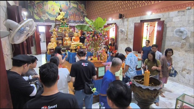 นครนายก – นักท่องเที่ยวเข้ากราบไหว้องค์หลวงพ่อปากแดงพร้อมขอพร โชคลาภ ธุรกิจ หน้าที่การงาน พร้อมส่องเลขเด็ดในอ่างน้ำมนต์ ใกล้วันหวยออก