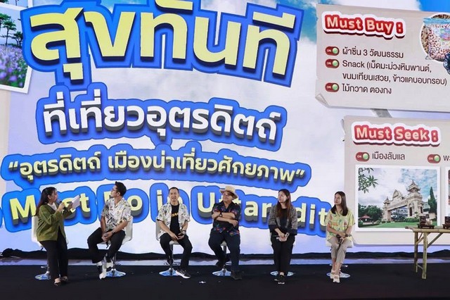 การท่องเที่ยวแห่งประเทศไทย (ททท.) โดย ศูนย์ประสานงานการท่องเที่ยวจังหวัดอุตรดิตถ์ จัดกิจกรรมข่าว “เที่ยวอุตรดิตถ์ ติดใจ” ณ เวทีหมู่บ้านภาคเหนือ ในงานเทศกาลเที่ยวเมืองไทย ศูนย์ประชุมแห่งชาติสิริกิติ์ ครั้งที่ 43 ภายใต้แนวคิดเสน่ห์ไทย ชูจุดขาย อุตรดิตถ์เป็นเมืองมหัศจรรย์ผลไม้และเสน่ห์แห่งธรรมชาติที่ผสมผสาน 3 วัฒนธรรม หลากหลายลงตัว (ล้านนา ล้านช้าง ไทยกลาง) พร้อมเปิดเมืองต้อนรับนักท่องเที่ยว ช่วงเทศกาลสงกรานต์ ตอกย้ำกระแสทุเรียนฟีเว่อร์ โดยได้รับเกียรติจาก นายสุรพันธ์ เจริญทรัพย์ (วัฒนธรรมจังหวัดอุตรดิตถ)