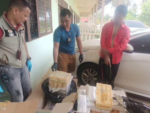 เจ้าหน้าที่ชุดจับบอกว่า การจับกุมดังกล่าวเป็นการสอบขยายผลจากการจับกุมผู้ค้ายาบ้าในพื้นที่จังหวัดเชียงราย และสอบสวนพบ มีการส่งพัสดุ ปลายทางในพื้นที่จังหวัดพัทลุง จำนวน 5 กล่อง ระบุชื่อต้นทางนายสมบูรณ์ เรือนแก้ว ส่วนปรายทางชื่อนางจันทรา (นามสมมุติ)ในชื่อเดียวกันทั้ง 5 กล่อง แตกต่างแค่สถานที่ และเบอร์โทรศศัพท์ของผู้รับ หลังสืบทราบเจ้าหน้าที่จึงได้วางแผนเข้าจับกุมดังกล่าว..