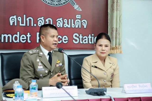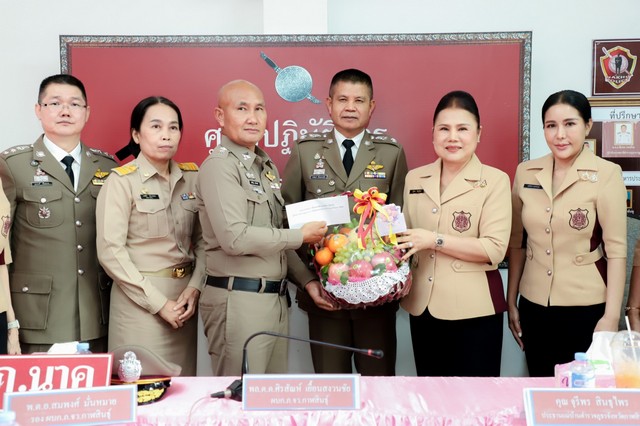 ที่ สภ.สมเด็จ จ.กาฬสินธุ์ พล.ต.ต.ศิรสัณห์ เยื้อนสงวนชัย ผบก.ภ.จว.กาฬสินธุ์ คุณจุรีพร สินธุไพร ประธานแม่บ้าน ภ.จว.กาฬสินธุ์ พ.ต.อ.สมพงศ์ มั่นหมาย รอง ผบก.ภ.จว.กาฬสินธุ์ คุณไอรินทร์ มั่นหมาย รองประธานแม่บ้านฯ คุณพนัชกร แสงอรุณ รองประธานแม่บ้านฯ พร้อมด้วย คณะแม่บ้านฯ เดินทางออกตรวจเยี่ยมติดตามบำรุงขวัญกำลังใจ ร.ต.ต.วีระยุทธ จิตพงษ์ รอง สว.(ป.)สภ.สมเด็จ ข้าราชการตำรวจที่ได้รับบาดเจ็บจากการปฏิบัติหน้าที่ เมื่อปี 2566 จากคนร้ายใช้อาวุธปืนแก๊ปยาวกระสุนลูกปรายยิงใส่บริเวณหน้าผากเหนือคิ้วซ้าย จำนวน 1 นัด ได้รับบาดเจ็บสาหัส