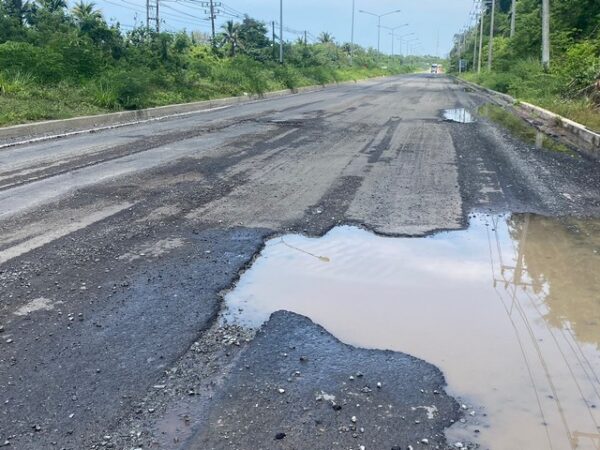 ตราด- ”ระทึก“ ถนนเศรษฐกิจพิเศษ สายคลองใหญ่เหมือนผิวดวงจันทร์กระบะเสียหลักข้ามเลน