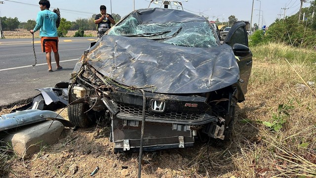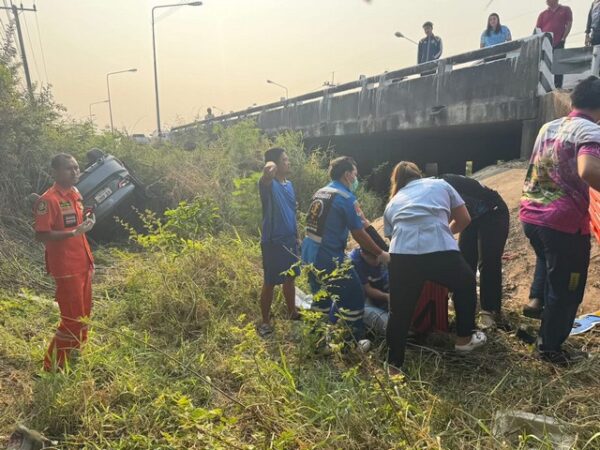 ร้อยเอ็ด…หลวงปู่ศิลาอีกแล้ว…เก๋งหลับในพุ่งตกสะพาน 4ชีวิตรอดปาฎิหารย์ เชื่อบารมีหลวงปู่ทองมา หลวงปู่ศิลา ช่วยพ้นภัย