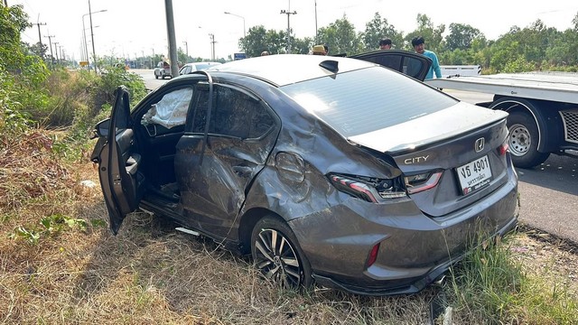 จึงรุดออกตรวจสอบพร้อมหน่วยกู้ภัยอโสกธวัชบุรี ถึงจุดเกิดเหตุเป็นถนนขนาด 4 ช่องจราจร ไม่มีเกาะกลางถนน พบรถเก๋งนั่งส่วนบุคคล ยี่ห้อฮอนด้า ซิตี้ สีบอร์นดำ ตกลงในลำห้วยที่ไม่มีน้ำ