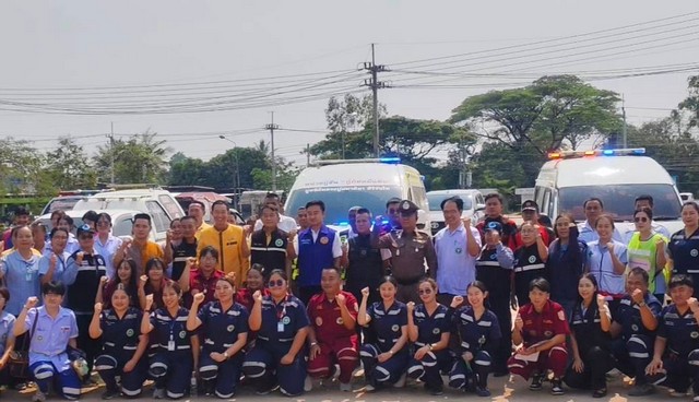 โรงพยาบาลเขาวง จังหวัดกาฬสินธุ์ ร่วมกับ อำเภอเขาวง ตำรวจสภ.เขาวง พร้อมด้วยเครือข่ายกู้ชีพ กู้ภัย และรพ.สต.ในพื้นที่ซ้อมแผนเตรียมความพร้อมรับอุบัติเหตุหมู่และระงับความรุนแรง ช่วงเทศกาลสงกรานต์ ปี 2568