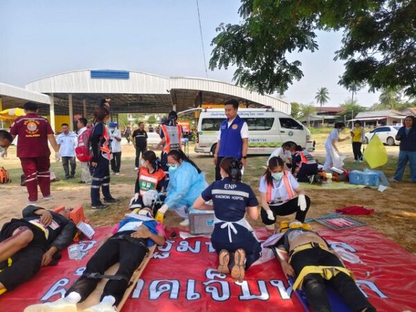 กาฬสินธุ์รพ.เขาวงร่วมทุกภาคส่วนซ้อมแผนอุบัติเหตุหมู่ช่วงสงกรานต์
