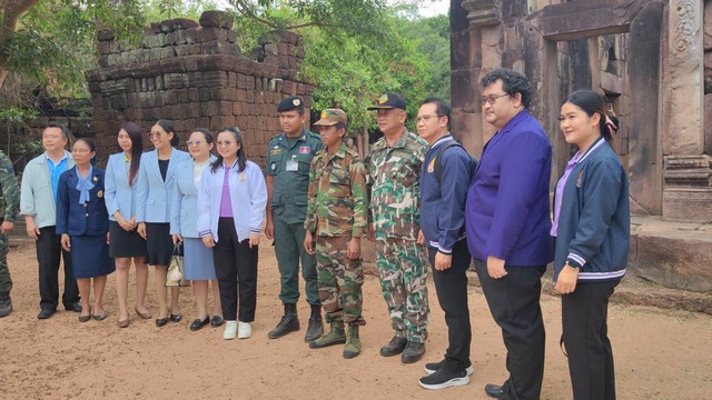 จากนั้นคณะผู้บริหารได้เดินทางต่อไปยัง ฐานปฏิบัติการปราสาทตาเมือนธม ตำบลตาเมียง อำเภอพนมดงรัก จังหวัดสุรินทร์ เพื่อนำ สิ่งของอุปโภค บริโภค เวชภัณฑ์ยา เพื่อเป็นขวัญกำลังใจ มอบแด่ทหารกล้า ที่ประจำชายแดน ที่ยังคงปฏิบัติหน้าที่รักษาความมั่นคงของประเทศในพื้นที่ พร้อมกันนี้คณะยังได้มอบสิ่งของที่จำเป็น แก่เครือข่ายอาสาสมัครช้างป่าจังหวัดสุรินทร์ ที่มีบทบาทสำคัญในการดูแลช้างป่าและลดผลกระทบต่อชุมชนโดยรอบ จากนั้น คณะได้เข้าเยี่ยมชมความงามของปราสาทตาเมือนธม โดยบรรยากาศเป็นไปด้วยความเรียบร้อยซึ้งยังคงมีทหารฝ่ายไทย และฝ่ายกัมพูชา อยู่ในพื้นที่บริเวณ ปราสาทตาเมือนธม
