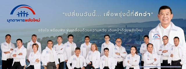 กลุ่มมุกเมืองใหม่ หมายเลข 4 นายนายศักดิ์ชัย เจริญวุฒิมากร ผู้สมัครว่าที่นายกเทศมนตรีเมือง ผู้สมัคร ส.ท. 19-24 ทั้ง 3 เขต