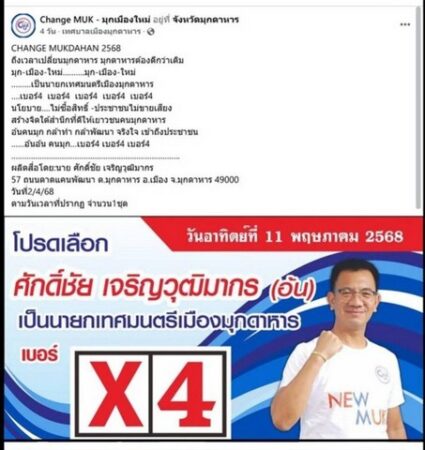 มุกดาหาร เลือกตั้งนายกฯ และ ส.ท.เมืองมุกดาหาร เปิด “กลุ่มมุกเมืองใหม่” รวม 4 กลุ่ม 3 รุม 1 อาสาพัฒนา “เปลี่ยน” เมืองมุกให้ดีขึ้น