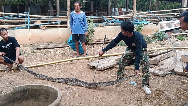 จากการสอบถาม นายนารอง เสนพันธ์ เล่าให้ฟังว่า ได้เลี้ยงไก่ชนไว้ในคอกไก่หลังบ้านจำนวนร้อยกว่าตัว และที่ผ่านมามีไก่ชนหายไปอย่างไร้ร่องรอยสามตัวเป็นพ่อพันธุ์แม่พันธุ์และตัวนี้เป็นตัวที่4เป็นพ่อพันธ์ไก่ชน ซึงซื้อมา4ตัว 1แสนกว่าบาท คาคว่าหน้าถูกงูกิน โดยช่วงเช้าที่ผ่านมา ได้เดินมาดูที่คอกไก่ชน ต้องตกใจเมื่อพบงูเหลือมตัวขนาดใหญ่นอนอยู่ภายในเล้าไก่ชน และพบว่าที่บริเวณท้องงูนั้นป่องใหญ่ คาดว่าได้เขมือบพ่อพันธุ์ไก่ชน ราคาสองหมื่นกว่าบาทไปจำนวน 1ตัวจนพุงกาง แล้วนอนอืดหนีออกจากกรงไม่ได้ แต่งูมีท่าทีดุร้ายพยายามฉกสู้เมื่อเข้าไปใกล้ ต่อไปนี้จะทำรั้วกั้นให้ดีๆ
