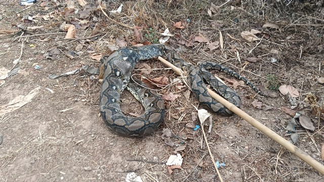 เพชรบูรณ์- เหลือมใหญ่พุงกาง เขมือบไก่ชนพ่อพันธุ์ เจ้าของเศร้า2หมื่นกว่าหายไปในท้องงู