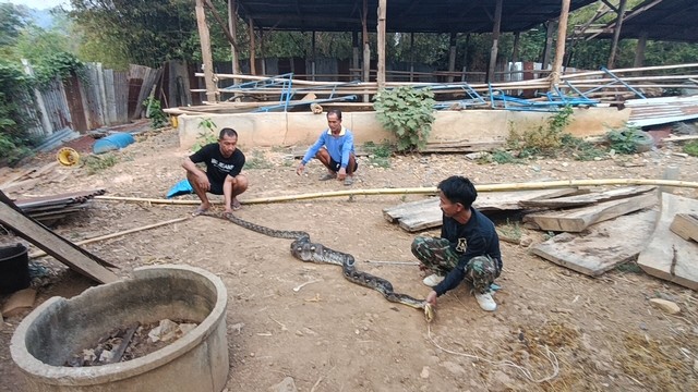 เจ้าหน้าที่เขตห้ามล่าสัตว์ป่าวังโป่ง-ชนแดน ได้รับการแจ้งจากนายทองแดง มาตรวังแสง ผู้ช่วยผู้ใหญ่บ้าน ขอความช่วยเหลือจับงูเหลือมตัวขนาดใหญ่ เข้าไปกินพ่อไก่ชนภายในเล้าไก่หลังบ้าน บ้านเลขที่127 หมู่ 1บ้านวังไทรทอง ตำบลซับเปิบ อำเภอวังโป่ง จังหวัดเพชรบูรณ์ จึงประสานเจ้าหน้าที่ที่มีความชำนาญในการจับสัตว์เลื้อยคลาน เข้าไปตรวจสอบและให้การช่วยเหลือ พบนายนารอง เสนพันธ์ อายุ 66 ปี เจ้าของไก่ยืมรอให้การช่วยเหลือ จากนั้นเจ้าหน้าที่เขตห้ามล่าฯ จึงเดินเข้าไปภายในคอกไก่พร้อมใช้อุปกรณ์จับงูกดไปที่บริเวณหัวงูเหลือม แต่ก็ไม่ยอมง่ายๆพยามฉกสู้ตลอดเวลา ก่อนจนมุมทางเจ้าหน้าที่เขตห้ามล่าจึงใช้มือจับที่หัวงูเหลือม แล้วช่วยนำตัวออกมานอกคอกไก่ชนได้อย่างปลอดภัยพร้อมใช้ตลับเมตรวัดความยาวได้ 3.5เมตร พร้อมนำใส่กระสอบปุ๋ยที่เตรียมมาใส่นำขึ้นรถยนต์ แล้วเอาไปปล่อยคืนตามธรรมชาติ