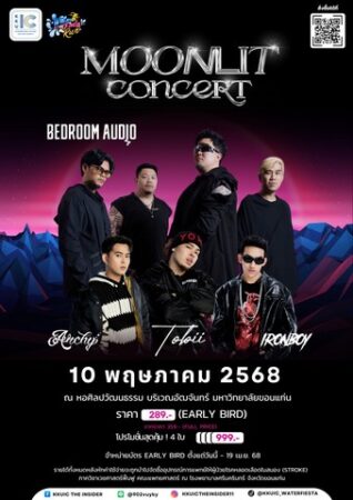 ในปีนี้ศิลปินที่เราเชิญมา ได้แก่ วง Bedroom Audio เจ้าของเพลงฮิตอย่าง “รักมือสอง” และ “ไม่บอกเธอ” พร้อมด้วย 3 ศิลปินเดี่ยว Tobii, IRONBOY, และ Archy แรปเปอร์ที่กำลังเป็นกระแส มาเติมเต็มความสนุกและสร้างความประทับใจตลอดค่ำคืน