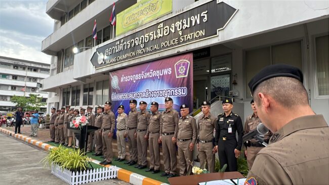 ชุมพร – ตำรวจภูธรจังหวัดชุมพรปล่อยแถวระดมกวาดล้างอาชญากรรม ช่วงเทศกาลสงกรานต์ ประจำปี 2568