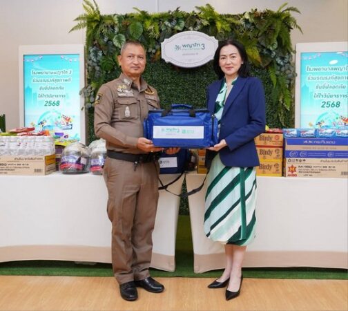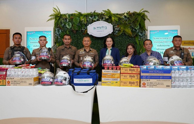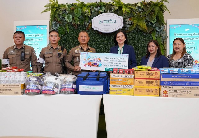 และ คุณณภัสกร เดชฉกรรจ์ ผู้จัดการส่วนบริหารกลยุทธ์การตลาด โรงพยาบาลพญาไท 3 ได้ส่งมอบของให้กับ ตัวแทน สถานีตำรวจนครบาลภาษีเจริญ และสถานีตำรวจนครบาลบางเสาธง โรงพยาบาลพญาไท 3 ขอให้ สงกรานต์ ปีนี้ผู้ใช้รถใช้ถนนทุกท่าน เดินทางโดยสวัสดิภาพ สนุกในวัน ปีใหม่ไทย 2568