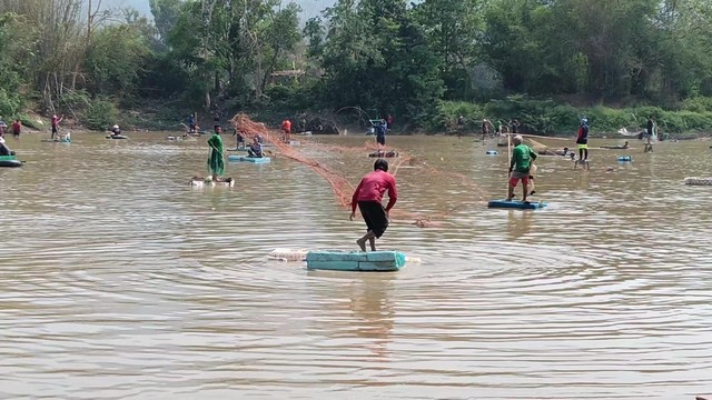 เพชรบูรณ์-สีสัน อากาศร้อน ชาวบ้านพร้อมเซียนแห เฮลงน้ำจับปลาในสระ พร้อมขายสดๆขอบสระ