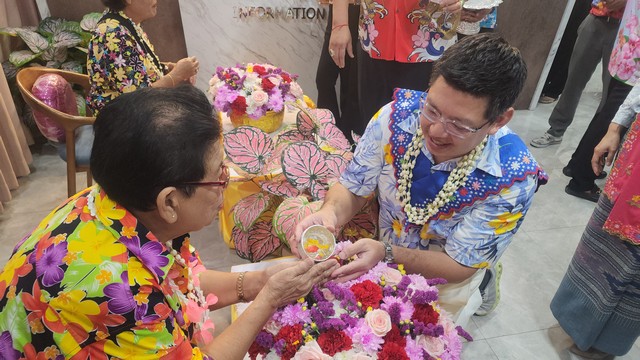 เมื่อวันที่ 11 เมษายน 2568 ที่สำนักงานเทศบาลเมืองคลองหลวง ชั้น 1 อ.คลองหลวง จ.ปทุมธานี จ่ายุทธ-ยุทธศักดิ์ ชูประเสริฐ นายกเทศมนตรีเมืองคลองหลวง และน.ส.อภิสรา เกษอินทร์ นายอำเภอคลองหลวง ร่วมกิจกรรมรดน้ำดำหัวขอพรจากผู้สูงอายุที่ จ่ายุทธ-ยุทธศักดิ์ ชูประเสริฐ นายกเทศมนตรีเมืองคลองหลวง ให้ความเคารพ เนื่องในเทศกาลวันสงกรานต์
