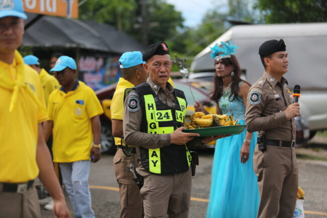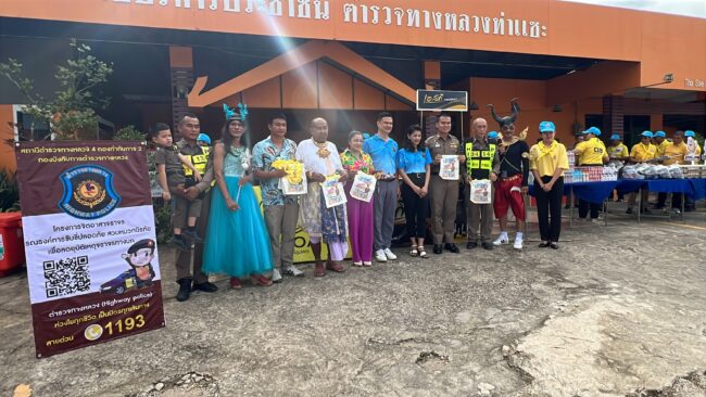 ทางตำรวจทางหลวงชุมพรจึงจัดกิจกรรมรณรงค์การขับขี่รถในช่วงเทศกาลสงกรานต์โดยจัดกิจกรรมอยู่บริเวณตู้หน่วยบริการตำรวจทางหลวงท่าแซะอยู่ในพื้นที่ของตำรวจทางหลวงจังหวัดชุมพร จัดกิจกรรมเพื่อที่จะอำนวยความสะดวกและส่งให้พี่น้องที่เดินทางกลับบ้านพี่น้องที่เดินทางออกมาจากกรุงเทพมหานครเดินทางกลับสู่ภาคใต้ก็ได้มีดำเนินการแจกของฝากจากจังหวัดชุมพรเป็นกล้วยเล็บมือนางซาลาเปา ทับหลี จากฝั่งระนองยังมีกาแฟเอสทีที่ชงบริการกาแฟเย็นมาแจกในวันนี้ และเครื่องดื่มโกโก้พีโคได้รับการสนับสนุนในพื้นที่มาร่วมกันส่งพี่น้องที่จะเดินทางลงสู่ภาคใต้โดยกลับบ้านในเทศกาลสงกรานต์ในปีนี้