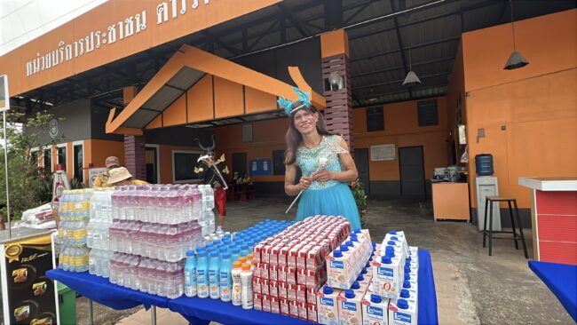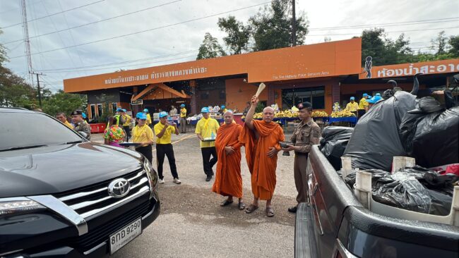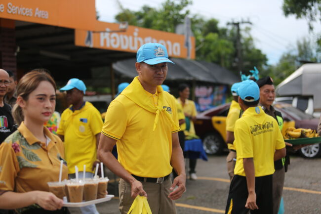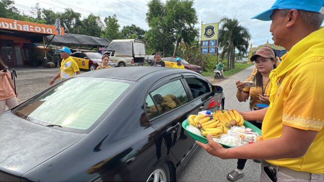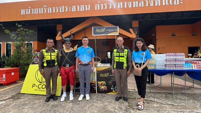 วันที่ 12 เมษายน 2568  เวลา 10.00น ณ หน่วยบริการประชาชน ตำรวจทางหลวงท่าแซะพ.ต.ท.กล้า สมบัติพิบูลย์ สว.ส.ทล.4 กก.2 บก.ทล. ร่วมกับ เจ้าหน้าที่ตำรวจ ส.ทล.4 กก.2 บก.ทล.(ชุมพร-ระนอง) ร.ต.ท.สมบัติ ปัตเมฆ รอง สว.(ป) ส.ทล.4 กก.2 บก.ทล., ร.ต.ต.ใจเทพ สาลี รอง สว.(ป) ส.ทล.4 กก.2 บก.ทล., จ.ส.ต.สิทธินันท์ จันทรโชติ ส.ต.อ.มาตุภูมิ รัตนคช ผบ.หมู่ ส.ทล.4 กก.2 บก.ทล และเจ้าหน้าที่ตำรวจทางหลวงประจำจุดจังหวัดชุมพร  พร้อม  กับผู้สนับสนุนหลัก ห้องอาหาร คุณสาหร่าย กาแฟเอสที เครื่องดื่มโกโก้ p-coa พี่โก้โกโก้ชุมพร สมาชิกจิตอาสาประชาชนเราทำความดีด้วยหัวใจโดยในกิจกรรมวันนี้ได้นำกาแฟเย็นและเครื่องดื่มโกโก้เย็นและน้ำดื่มซาลาเปาทับ หลี พร้อมด้วยกล้วยเล็บมือกล้วยหอมไข่ต้มและหมวกกันน็อกมาแจกจ่ายให้กับประชาชนที่เดินทางกับบ้านโดยเดินทางกลับภูมิลำเนาอย่างปลอดภัยถ้วนหน้า