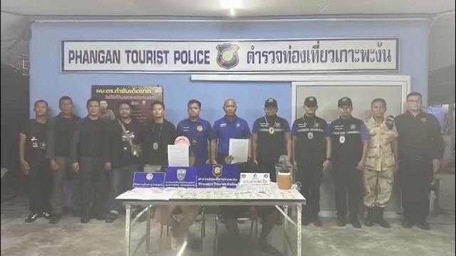 เมื่อเวลา 23.40 น. วันที่ 12 เมษายน 2568 คืนที่ผ่านมา ตามนโยบายของ พล.ต.ท.ศักย์ศิรา เผือกอ่ำ ผบช.ทท. ได้สั่งการให้บช.ทท. ปฎิบัติตามนโยบายผู้บัญชาการตำรวจแห่งชาติอย่างเคร่งครัด และความผิดอื่นๆที่ส่งผลกระทบต่ออุตสาหกรรมการท่องเที่ยว เจ้าหน้าที่ตำรวจท่องเที่ยวเกาะพะงัน ได้รับแจ้งว่า มีชายชาวไทยจำหน่ายเห็ดขี้ควายให้แก่นทท.บริเวณบ้านหาดริ้น ชื่อร้าน Me Exotic Cannabis ม.6 ต.เกาะพะงัน อ.เกาะพะงัน จ.สุราษฎร์ธานี ทั้งนี้ พ.ต.ท.วินิจ บุญชิต สว.ส.ทท.5 กก.2 บก.3 พร้อมได้ประสาน ให้ นายไพสิฐ ทองเจิม ปลัดอำเภอหัวหน้ากลุ่มงานบริหารงานปกครองรักษาราชการแทนนายอำเภอเกาะพะงัน พ.ต.อ.อภิชาต จันทร์สำเร็จผกก.สภ.เกาะพะงัน นายอัครพล พูลผล ปลัดอำเภอฝ่ายความมั่นคง พร้อมทั้งได้ประสาน หน่วยงานที่เกี่ยวข้อง เช่น ตำรวจตรวจคนเข้าเมือง เกาะพะงัน .สืบสวน สภ.เกาะพะงัน กก.สส.ภ.จว.สุราษฎร์ธานี ชุดจู่โจม ปะ ฉะ ดะ ร่วมจับกุม ผู้ต้องหา ทั้ง 2 รายในครั้งนี้นั้น โดยร้านดังกล่าวจะมีการตั้งโคฟไฟรูปเห็ด