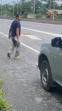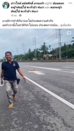 หลังจากนั้นได้ขอถุงพลาสติกของแม่ค้าที่ตั้งร้านขายของบริเวณนั้นในจังหวะที่เดินเข้าไปเพื่อจะได้นำร่างของสุนัขตัวดังกลัาวมาไว้ที่ข้างถนนเพราะคิดว่าคงจะตายแล้วปรากฏว่าพอเดินเข้าไปถึงกับตกใจเพราะสุนัขตอนดังกล่าวได้แหงนหน้าขึ้นมามองตนเอง เหมือนนอนอาบแดดและเหมือนกับจะถามตนเองว่าพี่มาทำอะไรตรงนี้ ตนเองจึงได้พูดว่าอ้าวมานอนทำอะไรตรงนี้ไม่ไปนอนข้างทางใต้ตนไม้ล่ะ จากนั้นก็ได้ไล่สุนัขตัวดังกล่าวไปจากช่องทางการจราจรเพราะกลัวว่าจะเกิดอุบัติเหตุขึ้น จึงได้นำคลิปดังกล่าวลงในโซเชียลและมีผู้คนมาคอมเม้นในมุมน่ารักอย่างมาก และในมุมมองของตนเองคิดว่าอยากจะช่วยเหลือเพราะคิดว่าอำเภอตะกั่วป่าเป็นแหล่งท่องเที่ยวถ้าเกิดอุบัติเหตุขึ้นมันจะเป็นภาพลบต่อการท่องเที่ยวได้