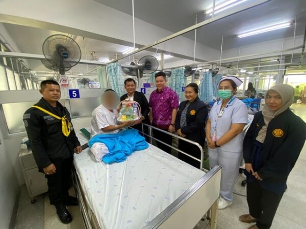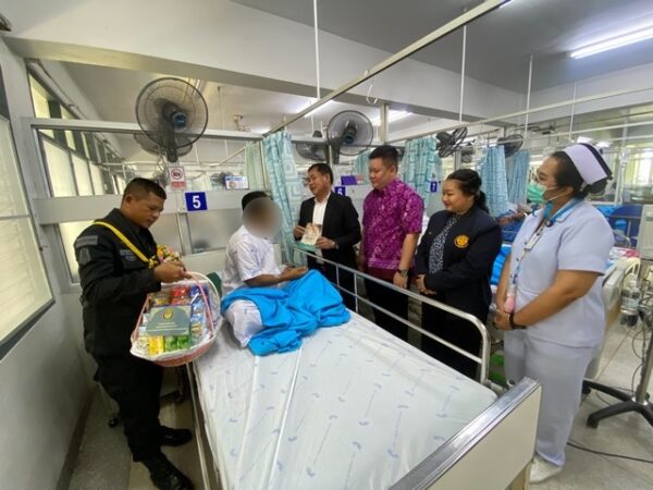 โดยในการนี้ ผู้ช่วยเลขาธิการ ศอ.บต. ได้พูดคุยให้กำลังใจ พร้อมมอบกระเช้าเยี่ยมในนาม เลขาธิการ ศอ.บต. เพื่อเป็นขวัญกำลังใจแก่ผู้ได้รับบาดเจ็บ