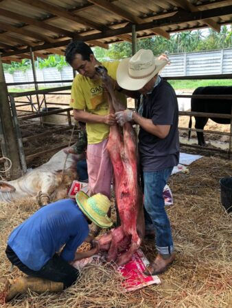 ปฏิบัติการช่วยชีวิตแม่วัวขนาดใหญ่และลูกวัวในท้อง หลังติดคลอดกว่า 3 วัน จนสามารถช่วยไว้ได้ทั้งแม่และลูกอย่างปลอดภัย