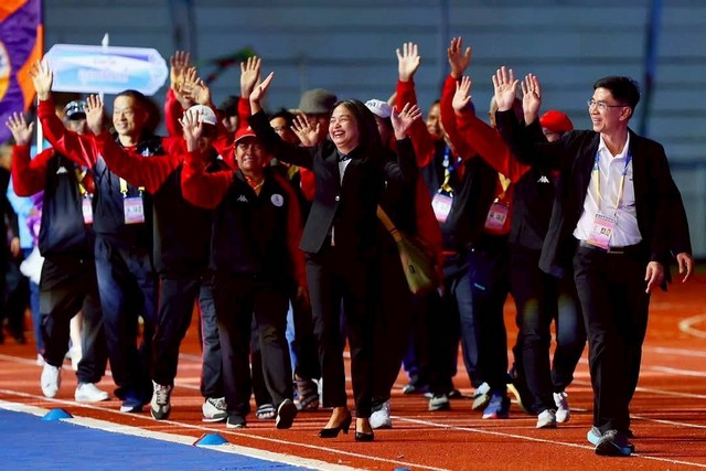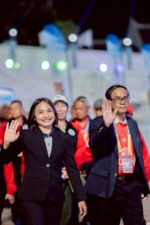 วันที่ 20 เมษายน 2568 เวลา 18.30 น. ณ สนามกีฬากลาง มหาวิทยาลัยการกีฬาแห่งชาติ วิทยาเขตชลบุรี ตำบลแสนสุข อำเภอเมืองชลบุรี จังหวัดชลบุรี นายนพฤทธิ์ ศิริโกศล ผู้ว่าราชการจังหวัดสุโขทัย มอบหมายให้ นายธีรยุทธ สำราญทรัพย์ รองผู้ว่าราชการจังหวัดสุโขทัย นำทัพนักกีฬาและผู้เกี่ยวข้องร่วมในพิธีเปิดการแข่งขันกีฬาอาวุโสแห่งชาติ ครั้งที่ 7 “ข้าวหลามเกมส์”