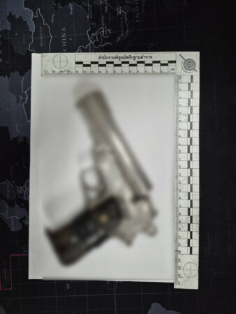 เจ้าหน้ที่ตำรวจพิสูจน์หลักฐาน ชพ. มาร่วมตรวจสอบที่เกิดเหตุเก็บเขม่าจากผู้ต้องหา ควบคุมตัว ส่งพนักงานสอบสวนดำเนินการต่อไป