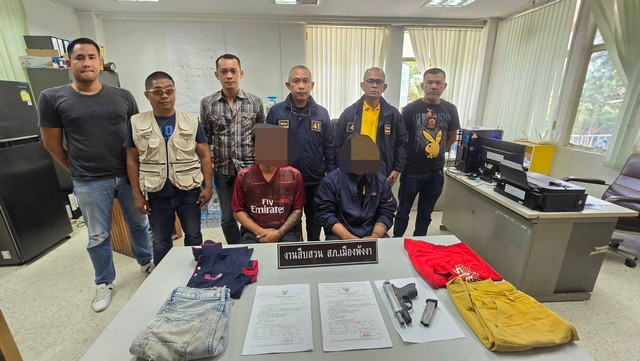เมื่อวันที่ 21 เม.ย.68 ผู้สื่อข่าวรายงานว่า พล.ต.ต.สมชาย ซื่อต่อตระกูล ผบก.ภ.จว.พังงา พร้อมด้วย พ.ต.อ.สราวุธ ชูประสิทธิ์ รองผบก.ภ.จว.พังงา พ.ต.อ.วีระพงษ์ รักขิโต ผกก.สภ.เมืองพังงา ร่วมแถลงผลการจับกุม นายพิพัฒน์ (นามสมมุติ)อายุ 27 ปี อาชีพ พนักงานส่ง แก๊สหุงต้ม และนายพิทักษ์ ษรเกตุ อายุ 20 ปี อาชีพขับ LINE Man ทั้งคู่เป็นพี่น้อง อยู่เลขที่ 7/9 หมู่ 1 ต.สองแพรก อ.เมือง จ.พังงา พร้อม ของกลาง อาวุธปืนยี่ห้อ blow TR 14 Auto ใช้สำหรับกระสุนปืนขนาด 9 มม. หรือขนาด .380 (ไทยประดิษฐ์) ซองบรรจุปืน พร้อมเสื้อผ้าที่ผู้ก่อเหตุใส่ในวันเกิดเหตุ