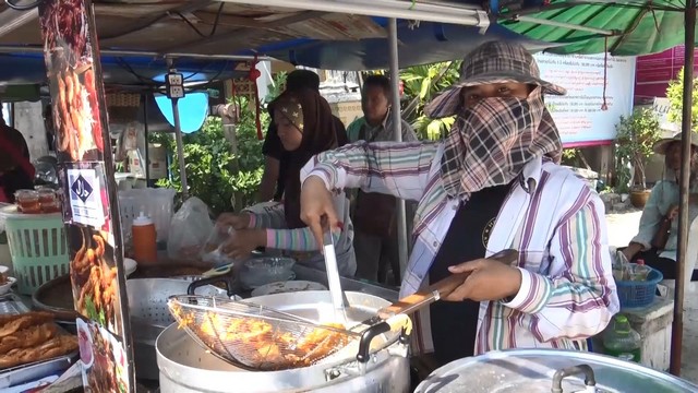 นางวรรณดี จันทร์จำรัส แม่ค้ารถเข็นขายอาหารทะเลทอดกรอบ จอดขายอยู่บริเวณริมถนนเยื้องร้านสะดวกซื้อเซเว่นฯแหลมสมิหลาสงขลา ออกขายตั้งแต่เวลา 09.00 น. ถึง 18.00 น. โดยมีลูกสาวและหลานสาวมาช่วยช่วงปิดเทอม ช่วงหน้าร้อนกุ้งทอดกรอบจะขายดีมาก ถ้วยละ 50 บาท โดยใช้กุ้งขาว นักท่องเที่ยวชาวมาเลเซียชอบกินแห่ซื้อคนละหลายๆถ้วย กินกันร้อนๆ กุ้งกรอบอร่อย