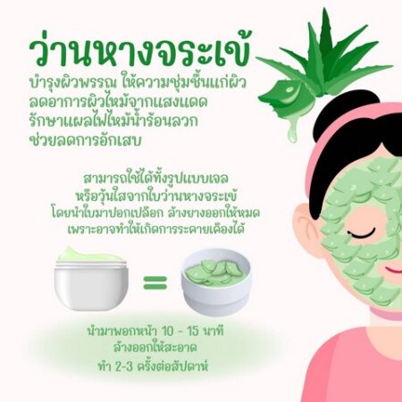 กรมการแพทย์แผนไทยและการแพทย์ทางเลือก ขอแนะนำ 5 สมุนไพร ที่มีสรรพคุณช่วยบำรุงผิวพรรณ ให้กลับคืนสู่สภาพปกติ ได้แก่ ว่านหางจระเข้ ช่วยบำรุงผิวพรรณ ช่วยให้ความชุ่มชื้นกับผิว รักษาแผลไฟไหม้น้ำร้อนลวก ช่วยลดการอักเสบ ช่วยลดอาการผิวไหม้จากแสงแดด วิธีการใช้สามารถใช้ได้ทั้งรูปแบบเจล หรือนำวุ้นใสจากใบว่านหางจระเข้ โดยนำใบมาปอกเปลือก ล้างยางออกให้หมดเพราะอาจทำให้เกิดการระคายเคืองได้