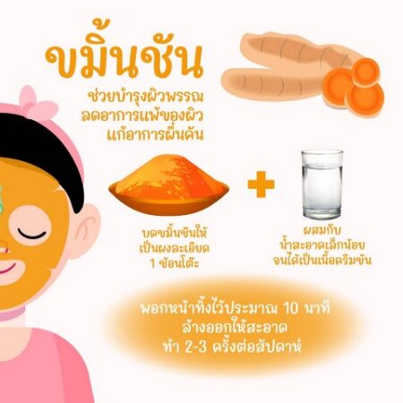 น้ำผึ้ง ช่วยเพิ่มความชุ่มชื้นให้กับผิว และมีฤทธิ์ยับยั้งแบคทีเรียช่วยลดสิว ขมิ้นชัน แก้อาการผื่นคัน แก้น้ำกัดเท้า ลดอาการแพ้ของผิว ช่วยบำรุงผิวพรรณ แตงกวา สรรพคุณ ช่วยให้ผิวชุ่มชื้น ช่วยลดความหยาบกร้านของผิว ลดการอักเสบของผิว และ บัวบก ใช้สำหรับบรรเทาอาการผด ผื่นคัน ช่วยลดการอักเสบของผิว สมานผิว สามารถใช้ในรูปแบบครีมหรือผลิตภัณฑ์ดูแลผิว ที่มีส่วนผสมของบัวบก เป็นต้น