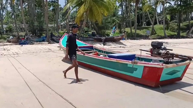 พังงา-ผวาแผ่นดินไหว!!ประมงพื้นบ้านเขาปิหลายผวาแผ่นดินไหว ลากเรือขึ้นฝั่ง