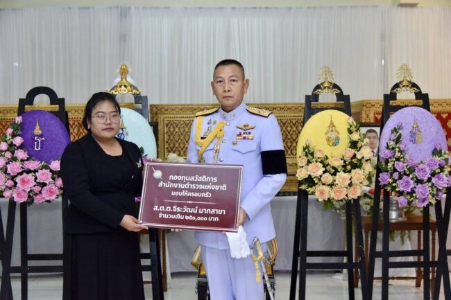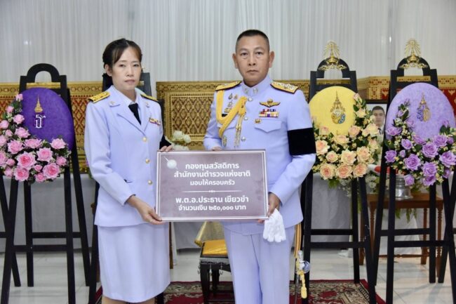 ทั้งนี้ ผบ.ตร. ได้ร่วมพิธีสวดพระอภิธรรมศพ และมอบเงินช่วยเหลือและให้กำลังใจแก่ครอบครัวข้าราชการทั้ง 6 นาย ซึ่งสำนักงานตำรวจแห่งชาติขอแสดงความเสียใจอย่างสุดซึ้ง และขอยกย่อง เชิดชูเกียรติตำรวจทั้ง 6 นาย ที่มีจิตวิญญาณความเป็นผู้พิทักษ์สันติราษฎร์ จวบจนวาระสุดท้ายของชีวิต