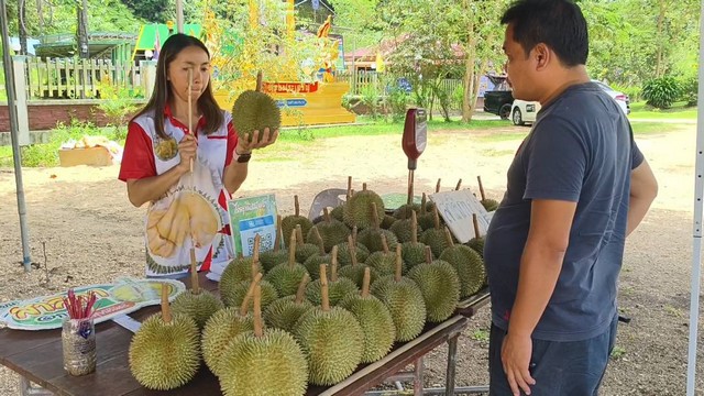 พังงา-!!วางแผงแล้วอร่อยแน่!!ลูกค้าทยอยซื้อทุเรียนสาริกาตั้งแต่ต้นฤดูกาล ชมชอบรสชาดพันธุ์พื้นบ้าน