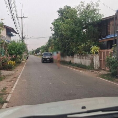 กาฬสินธุ์ชายคลั่งเปลือยกายเดินป่วนหมู่บ้าน ตำรวจตามตะครุบตัวระงับสติอารมณ์