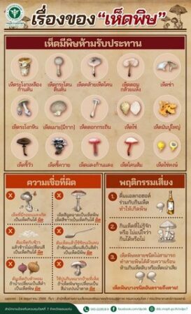 จากข้อมูลของกรมควบคุมโรค กระทรวงสาธารณสุข เนื่องจากช่วงนี้หลายพื้นที่เริ่มมีฝนตก ทำให้หลายพื้นที่เริ่มมีเห็ดป่า หรือเห็ดขึ้นเองตามธรรมชาติหลากหลายชนิด ทั้งเห็ดกินได้และเห็ดพิษ โดยเฉพาะเห็ดในระยะดอกตูม ซึ่งมีลักษณะคล้ายกันจนไม่สามารถแยกได้ด้วยตาเปล่าหากไม่มีความรู้ความชำนาญ อาจทำให้ประชาชนเข้าใจผิด และนำเห็ดพิษมาปรุงประกอบอาหารจนเกิดการเจ็บป่วยและเสียชีวิตได้