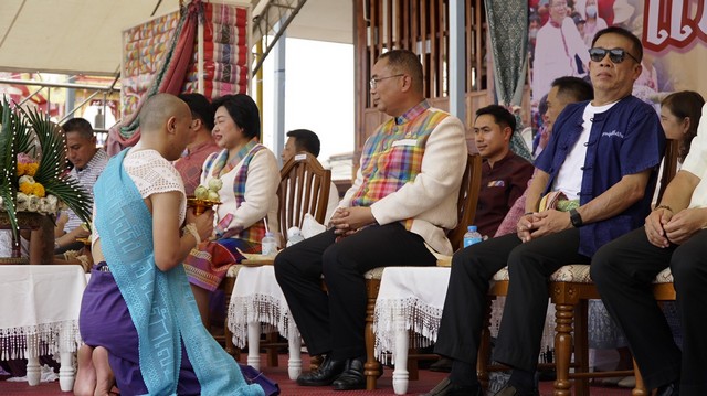 นายเชวงศักดิ์ เร่งไพบูลย์วงษ์ สส.เขต 6 ผู้นำองค์กรท้องถิ่น และชาวอำเภอเขียว ร่วมกันจัดพิธีเปิดงานสืบสานประเพณีอุปสมบทหมู่ “แห่นาคโหด” ประจำปี 2568