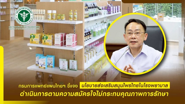 กรมการแพทย์แผนไทยและการแพทย์ทางเลือก ชี้แจง นโยบายการนำสมุนไพรไทยมาใช้ทดแทนยา แผนปัจจุบัน เป็นการส่งเสริมการใช้ยาสมุนไพรในโรงพยาบาล ดำเนินการตามความสมัครใจ เพื่อสร้างระบบสาธารณสุข ที่แข็งแกร่งขึ้นในระยะยาว และเป็นการขับเคลื่อนภูมิปัญญาไทยสู่ระดับสากล